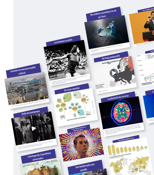 Chaque leçon est composée d'extraits d'articles, de vidéos ou d'infographies du Monde, suivis de questions sur ces extraits et sur vos connaissances antérieures. Vous testez ainsi votre mémoire immédiate et de long terme. Elle dure une dizaine de minutes, pour favoriser l'assiduité et la régularité.
